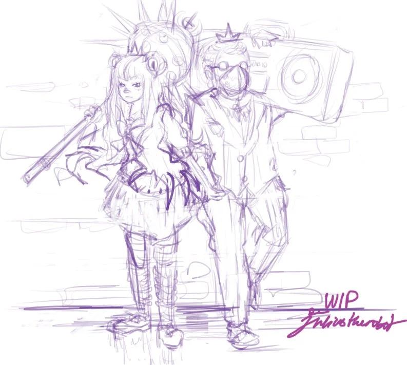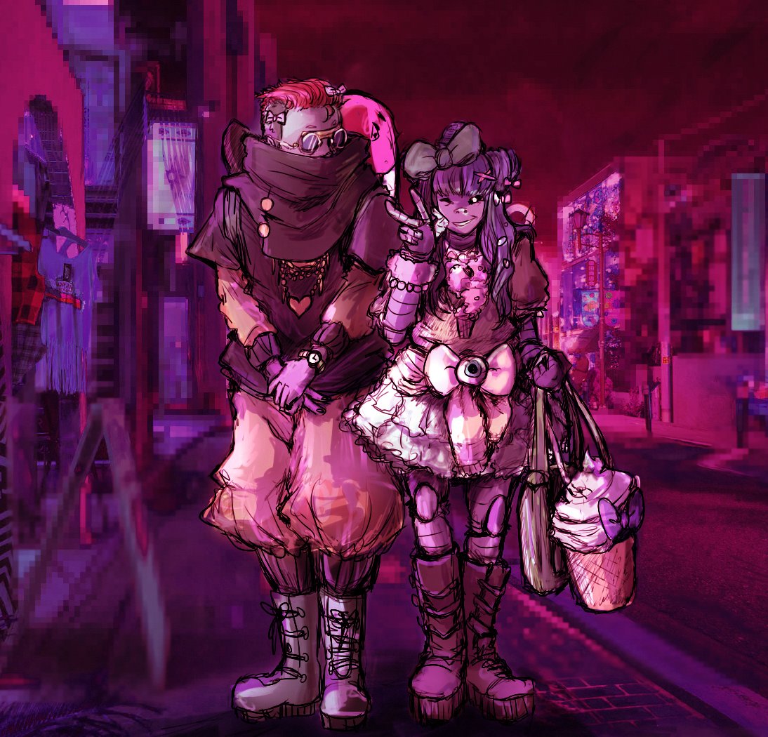 I’ve always been a huge fan of Gorillaz and the idea of using a cartoon or fictional persona to represent yourself online really appealed to me. I did not have a clear plan, but a concept started forming anyway. The story centered around a magical robot girl who fell to Earth and was trapped underwater in a containment pod. Ouji, an alien prince who ran away from his home planet to come to Earth and be cool, discovers her, pulls her from the water, reactivates her. Together, they team up as a trip pop inspired duo who are constantly on the run from mysterious forces.