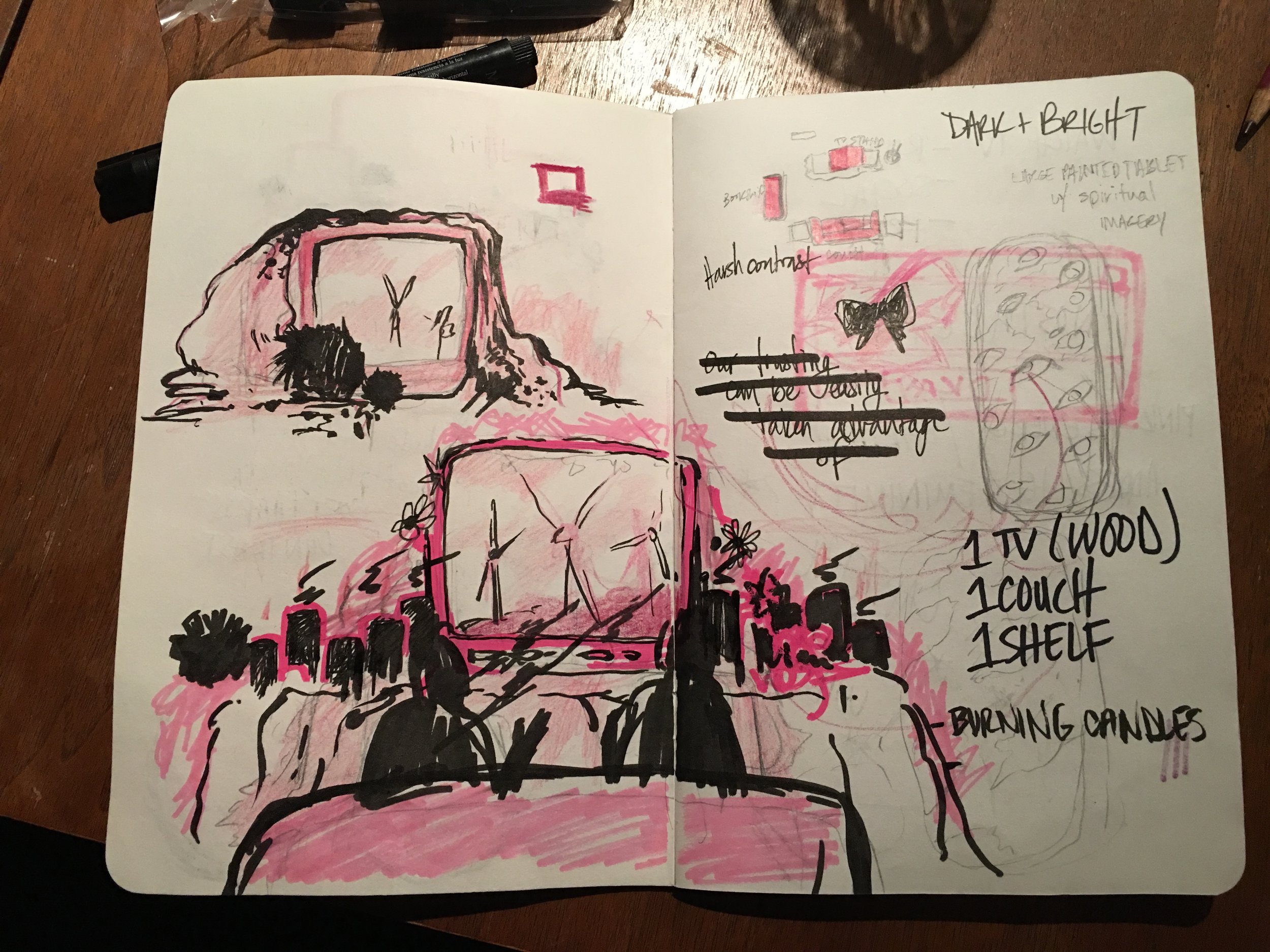 Sketch concepts for Pink Hell as an installation